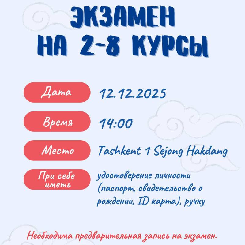 ✨ 20 noyabrdan imtihonga registerasiya boshlanadi. ❗️ Imtihonga oldindan ro’yxatdan o’tish talab qilinadi. ✨ Imtihon bepul. O’zingiz bilan pasport va ruchkani olib keling.